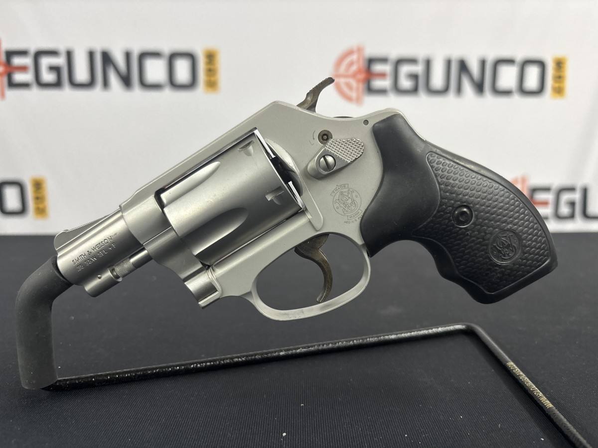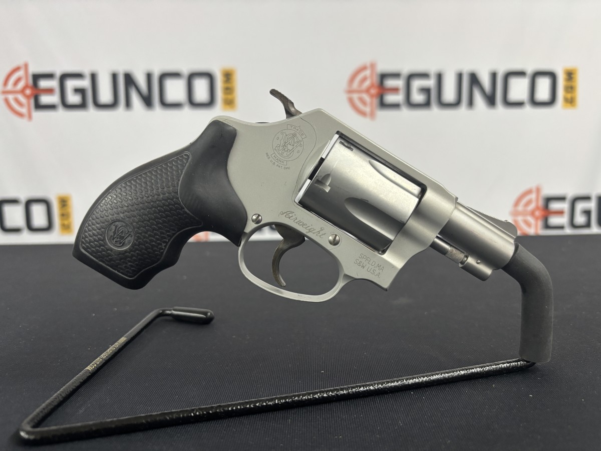 S&W MODEL 637 .38 SPECIAL REVOLVER. IT FEATURES A LIGHTWEIGHT ALLOY FRAME, STAINLESS STEEL 1.87″ BARREL AND CYLINDER, 5 ROUND CAPACITY, DA/SA TRIGGER AND WEARS FACTORY RUBBER GRIS. NO BOX INCLUDED.